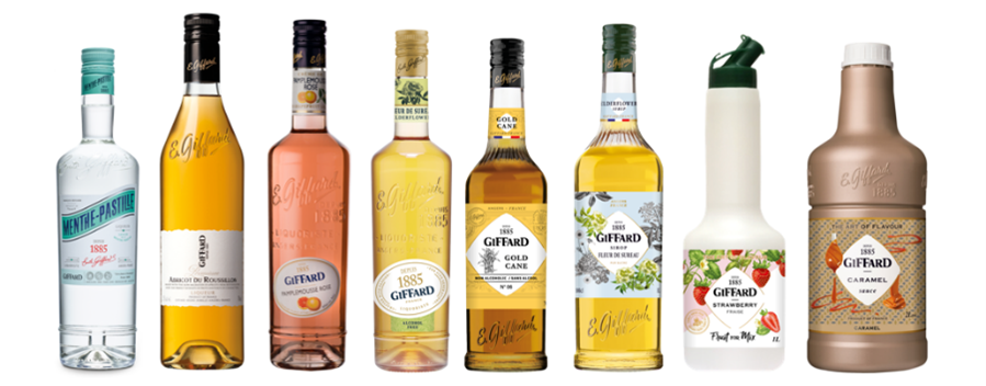 GIFFARD bietet eine Vielzahl klassischer und moderner Liqueurs und Sirupe mit intensiven natürlichen Aromen: